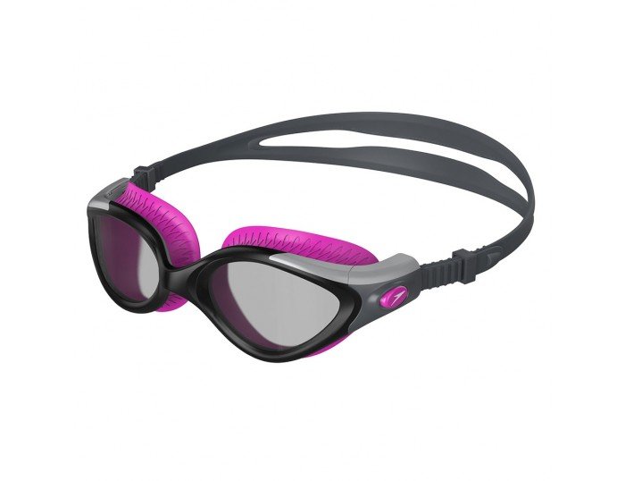 Antiparras de mujer diseñadas para imitar las curvas de los rostros femeninos con juntas muy suaves y un armazón flexible que se amolda al rostro y reduce la filtración de agua y marcas alrededor de los ojos. Lentes de ángulo amplio, antiniebla para una excelente visión y claridad. Tecnología Biofuse diseñado con materiales muy blandos que brindan gran comodidad