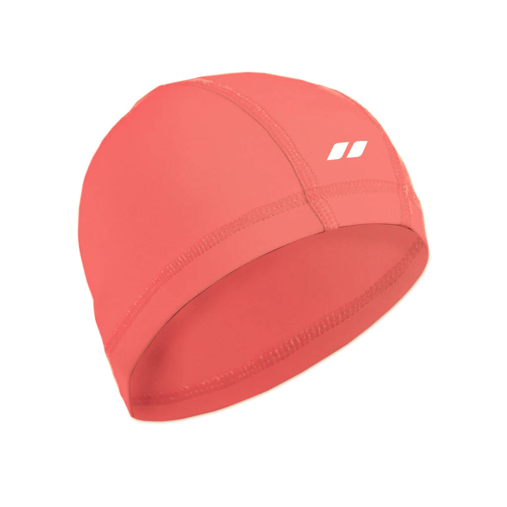 Gorra para natación fabricada con una mezcla de poliéster y poliamida, junto con elastano. El material repele levemente el agua (HR Hidro Repelente), con capacidades hidrófugas. Sin embargo, esto no hace que la gorra sea impermeable.
