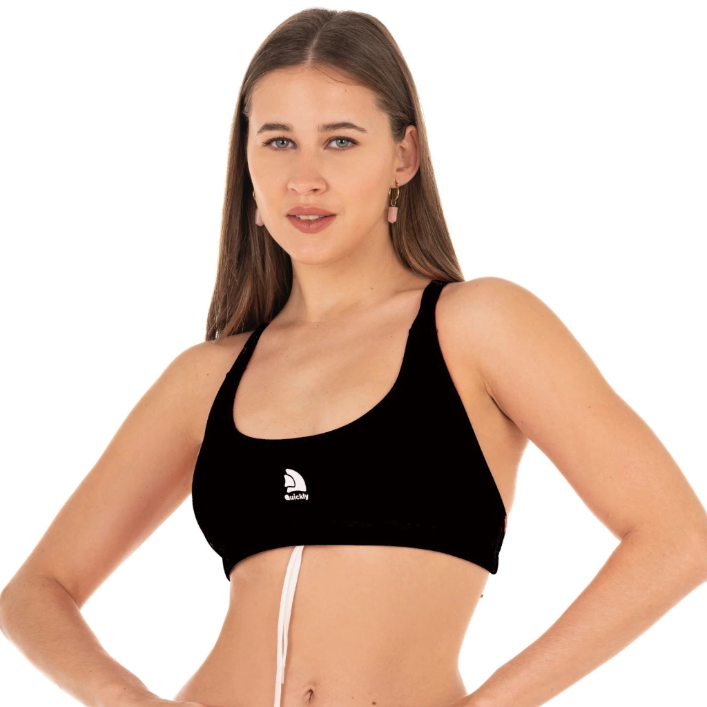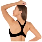 Corpiño de malla negro liso. Prenda resistente al cloro, apta para su uso diario. Viene forrado en su interior para brindar mayor comodidad y confort. Posee cordón de ajuste en el bajo busto para brindar un mayor calce.
